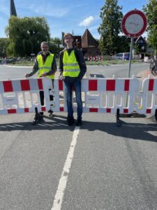 Am 17.8.2025 erlebte Buxtehude ein Highlight der besonderen Art: Erstmalig startete das Eintages-Radrennen für die Profis in Buxtehude! Und mittendrin zwei SFB’er: Torsten Damm und Justus Ibe waren als Streckenposten im Einsatz! Bereits am frühen Sonntagmorgen kamen die „Jedermänner“ (nach inoffiziellen Schätzungen über 10.000!) von Hamburg kommend durch das Alte Land nach Buxtehude, um dann durch den Landkreis Harburg zurück nach Hamburg zu fahren. Von 10 Uhr bis 12 Uhr gab es auf einer Bühne vor dem Rathaus eine ausführliche Vorstellung der 23 Profi-Teams.  Um 12 Uhr starteten dann die 161 Profi-Radfahrer bei strahlendem Sonnenschein am Rathausplatz, um durch die von etlichen Zuschauern gesäumten Straßen über Breite Straße, Ostfleth, Hansestraße und Stader Straße die 201 KM lange Strecke zum Zielort Hamburg in Angriff zu nehmen. Es ist schon beeindruckend, welcher logistische Aufwand für so ein sportliches Großereignis betrieben wird. Das war mal ein ganz anderes Erlebnis für Beteiligte wie Zuschauer.