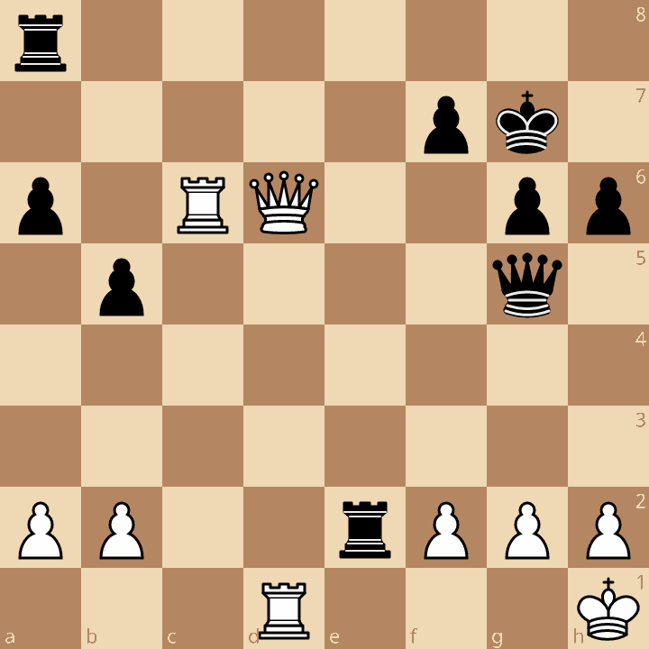 Stellung nach 27. Dxd6?? Hier griff die WGM daneben und spielte Tae8. Welcher Zug hätte unmittelbar gewonnen?
